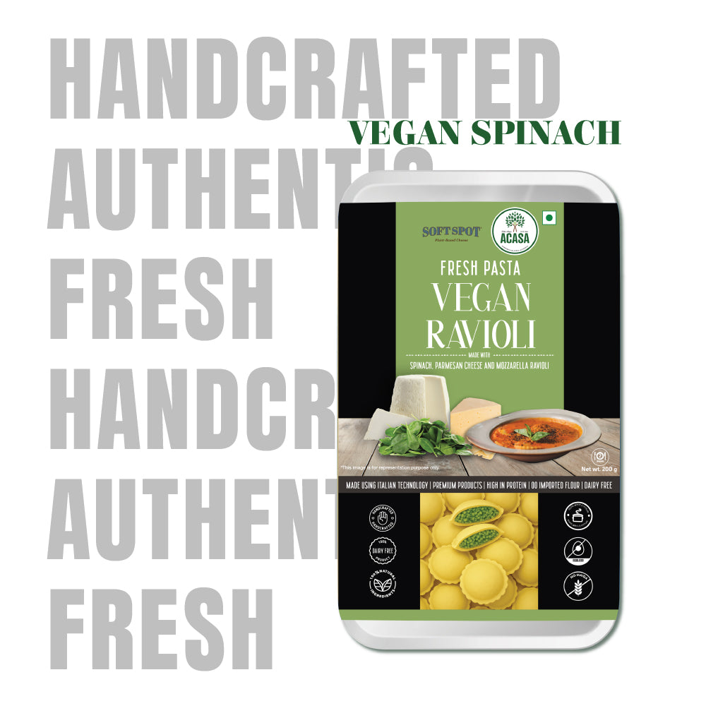 Celebrate plant-based delight with Acasa’s Vegan Spinach Ricotta Ravioli: crafted with fresh spinach and a dairy-free ricotta alternative, seasoned lightly to let the natural flavors shine—vegan indulgence at its best.