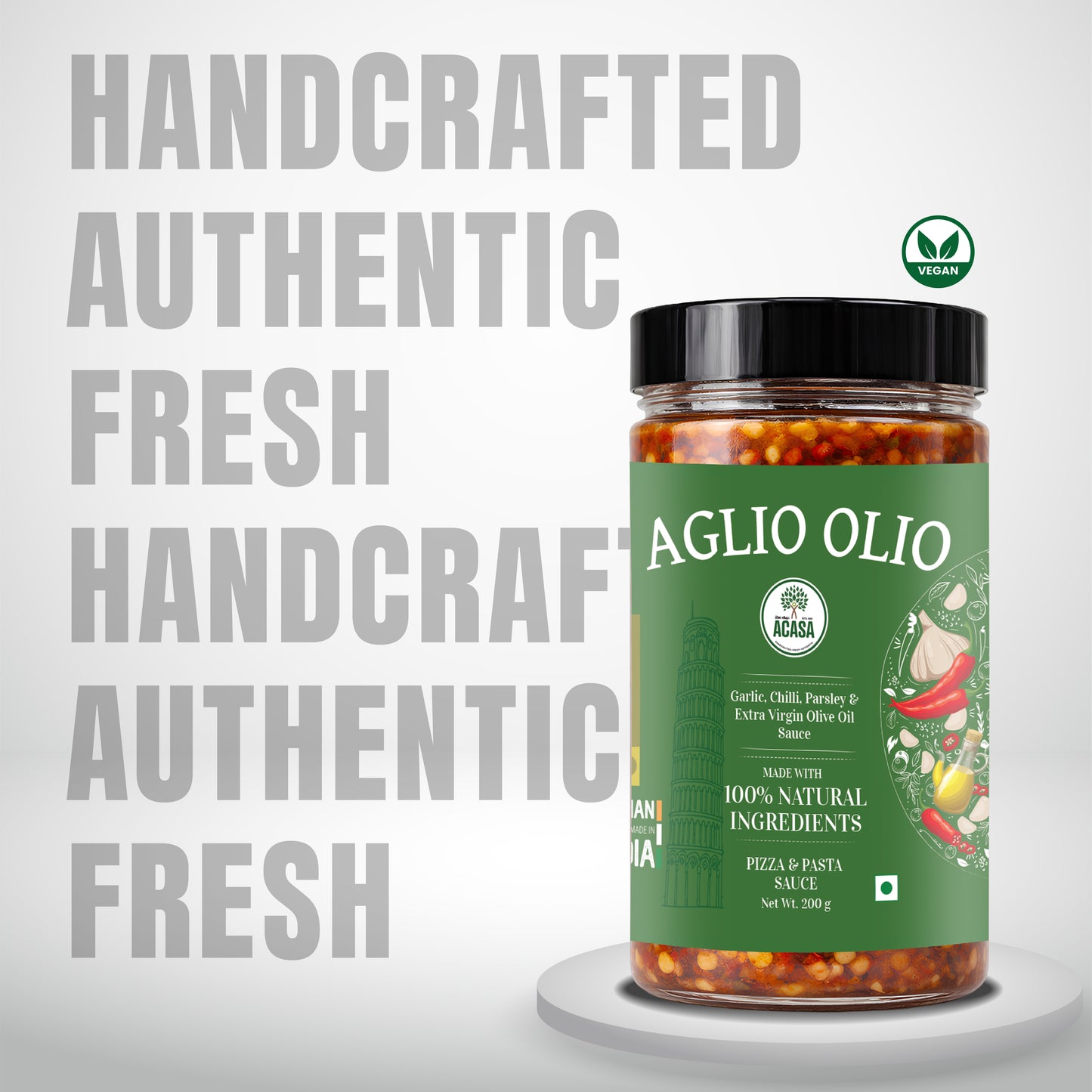 Perfect Sauce for a quick fix! Extra Virgin olive oil mixed with Garlic, Chili, Italian herbs, and spices will taste best when paired with Acasa Spaghetti pasta. The aroma of slow-roasted, perfectly brown garlic in olive oil is the essence of Acasa Aglio Olio Sauce by Acasa.