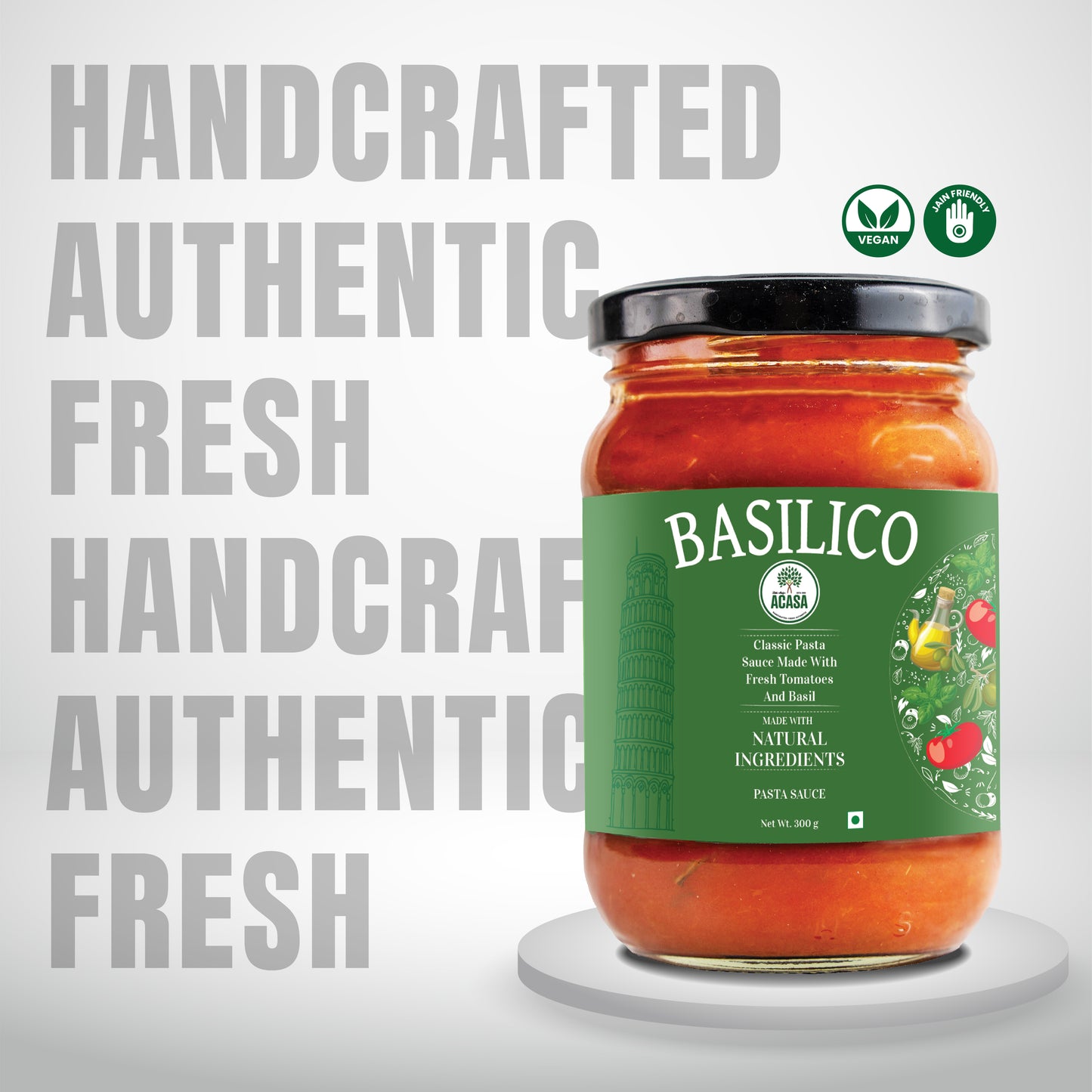 Basilico Sauce by Acasa is a simple sauce that relies on good, tasty, ripe tomatoes, fresh basil, and good olive oil. Classic, simple yet delicious!