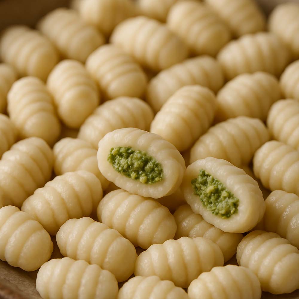 Discover the exquisite blend of potato and durum wheat semolina in our gnocchi, creating a perfect harmony of textures. Indulge your taste buds with the tantalizing flavors of pesto, complemented by the luxurious creaminess of mascarpone cheese.