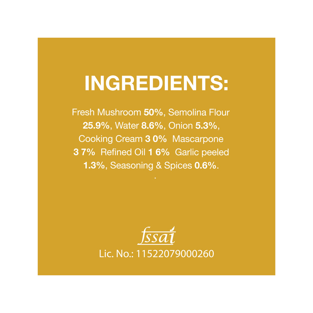 Fresh Mushroom, Semolina Flour, Grana Padano, Onion, Peeled Garlic, Whole Milk Powder, Salt